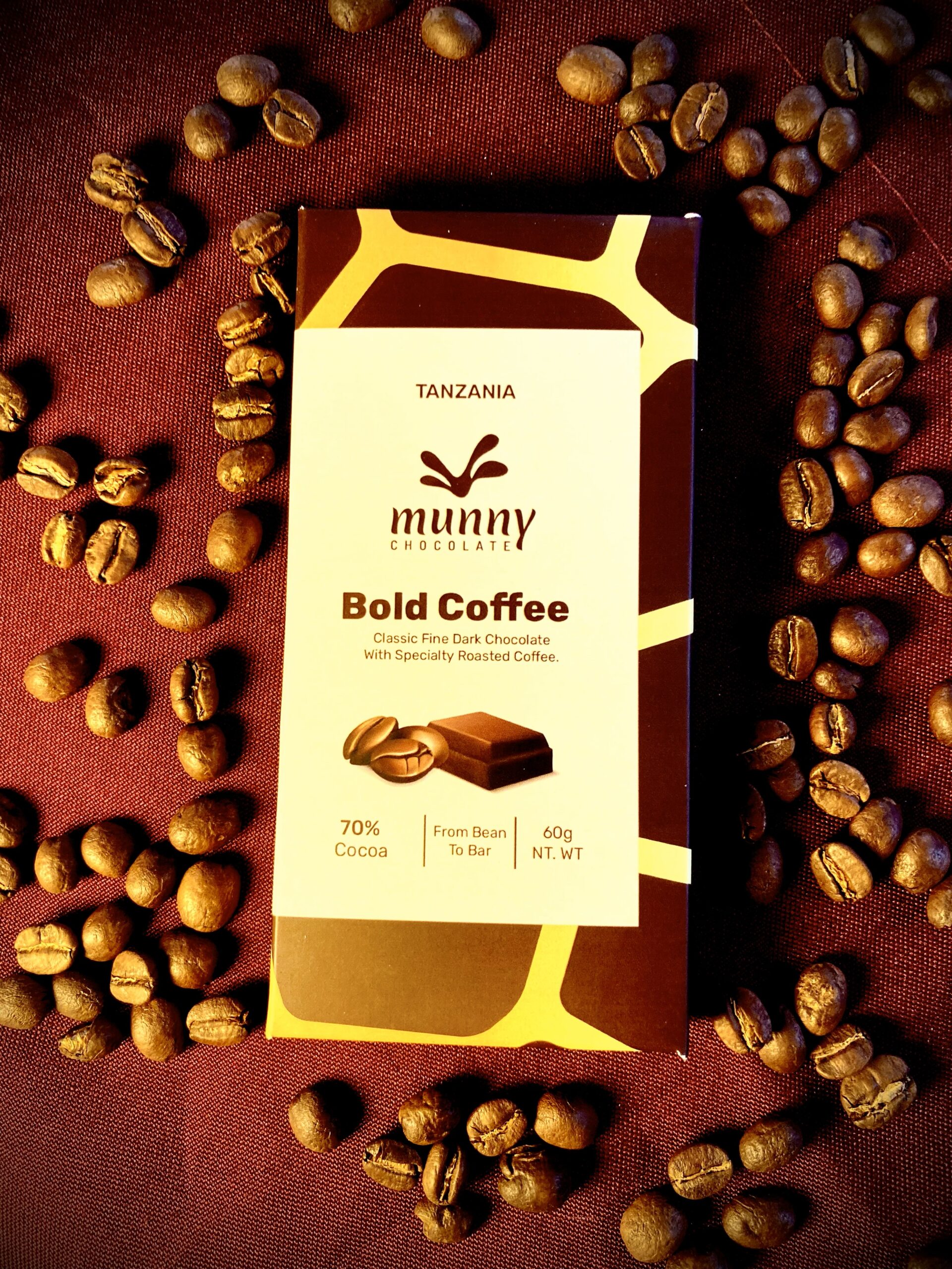 Bold Coffee 70% Tanzanian Dark Chocolate is crafted in Tanzania using carefully selected local cocoa and coffee.